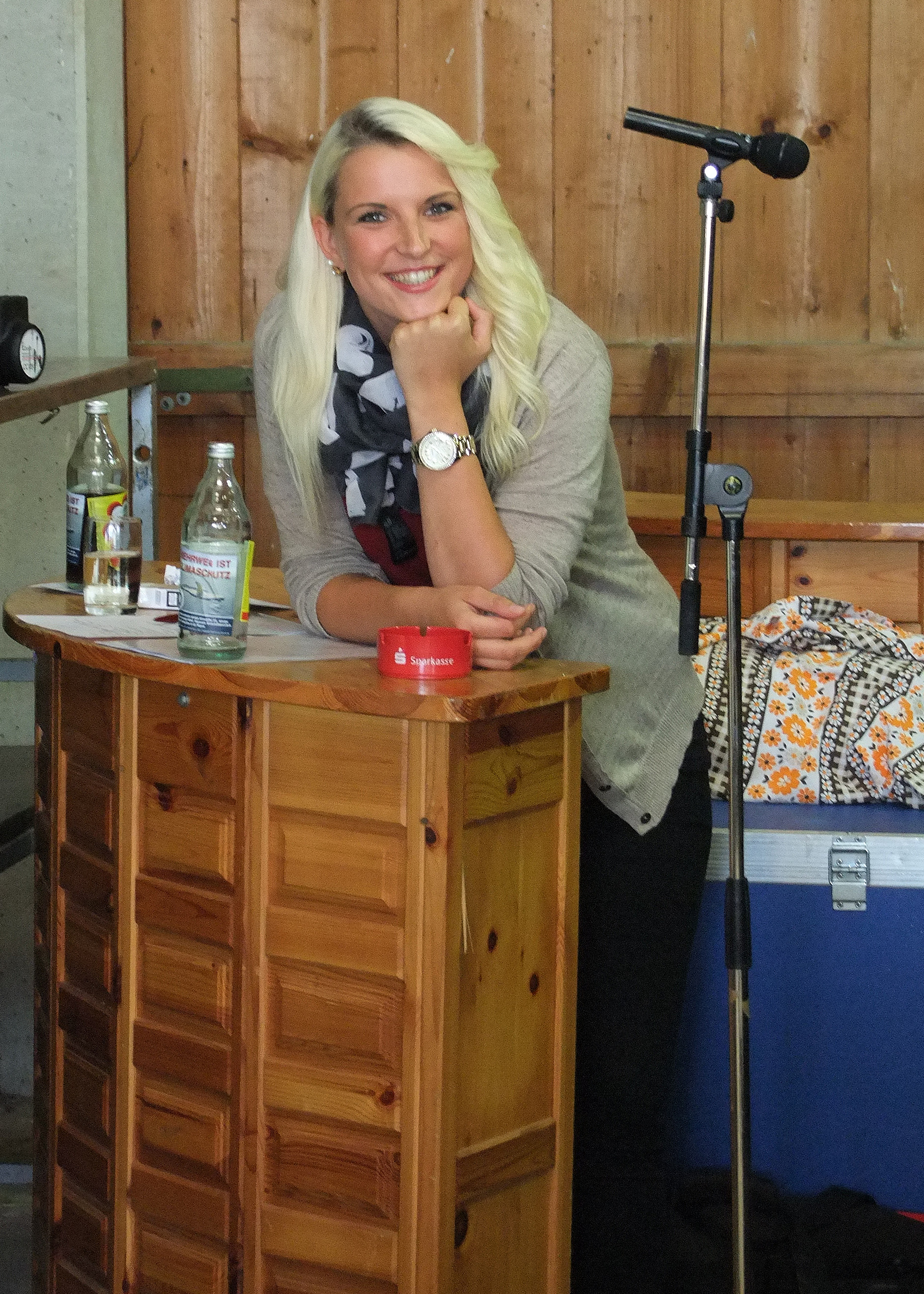 Mit dem ersten Contest zur "Miss & Mister Blasmusik" Wahl ging es los. Maßrutschen stand auf dem Plan, was vom ehemaligen Präsidenten des Blasmusikverband Ulrich Kiecza erfolgreich demonstriert wurde. Die Teilnehmer machten es nach und bereits zeichneten sich die ersten Favoriten ab.